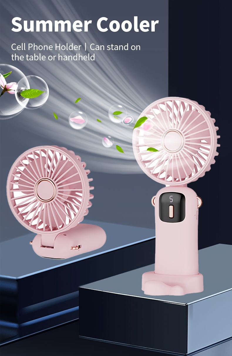 Home/USB Gadgets/1pc Portable Mini Neck Fan – 5-Speed Adjustable, LED Digital Display, Foldable, Long Battery Life, Mobile Phone Stand, Lanyard Included – Perfect for Home, Office, Outdoor Traveling